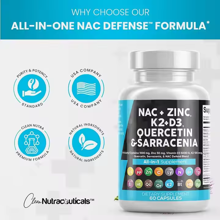 แคปซูลอาหารเสริมวิตามินแนค + ซิงค์ประสิทธิภาพสูงปรับปรุงภูมิคุ้มกันทุกวัน