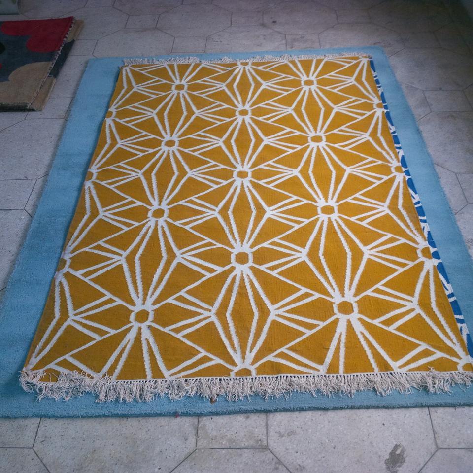 พรมเปอร์เซียขนสั้นแบบตัดด้วยมือ ทำจากฝ้าย เป็นมิตรกับสิ่งแวดล้อม ด้านหลังเป็นยางลาเท็กซ์กันลื่น เหมาะสำหรับห้องนั่งเล่น ห้องนอน ออกกำลังกาย และละหมาด