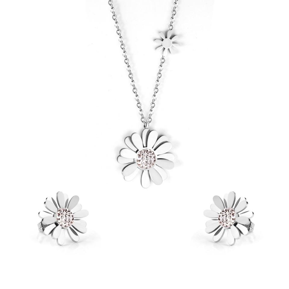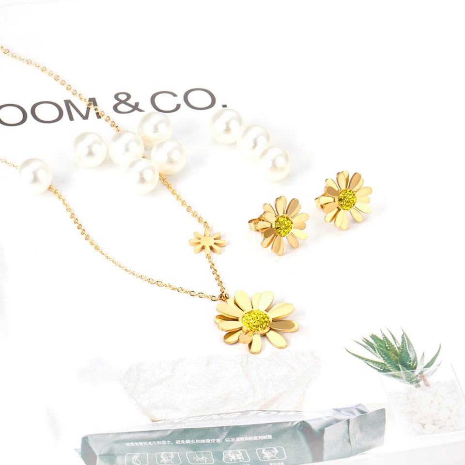 ชุดเครื่องประดับสร้อยคอรูปดอกไม้ชุบทอง 18K บนสแตนเลสสตีลขัดเงาคุณภาพสูงสำหรับเด็กผู้หญิง