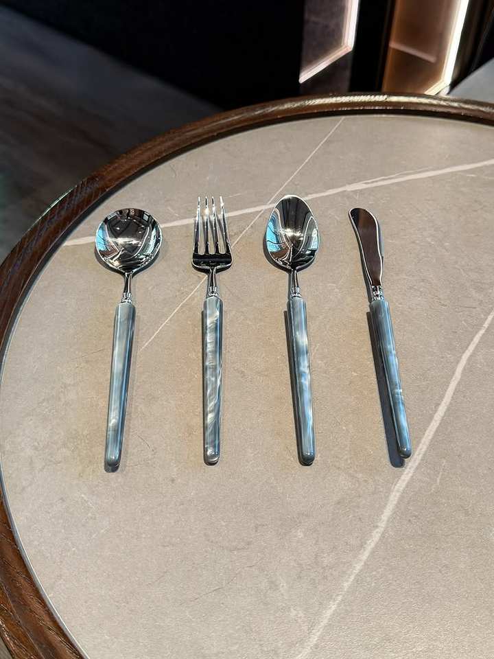 ชุดช้อนส้อมมีดสแตนเลสคุณภาพสูงแบบขัดเงา ใช้ซ้ำได้ พร้อมบริการสกรีนโลโก้ตามสั่ง