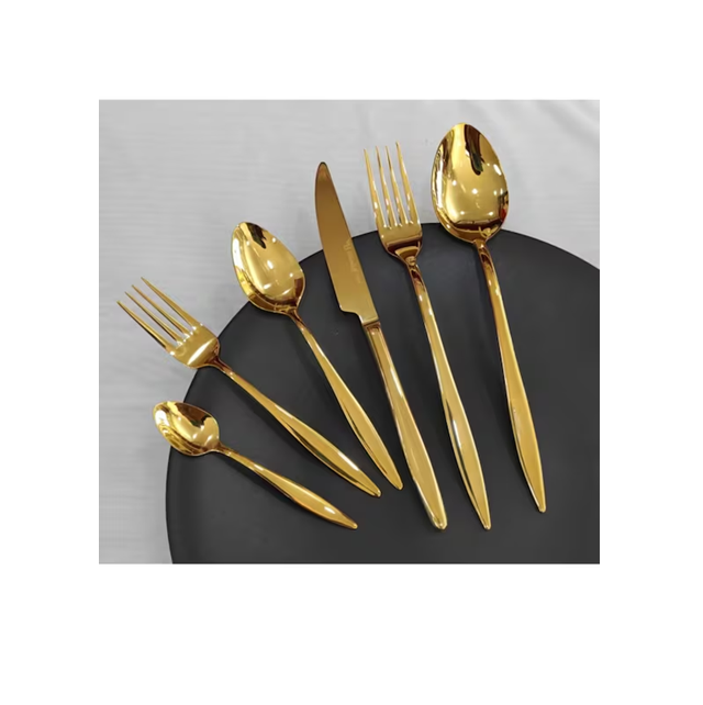 ชุดเครื่องใช้บนโต๊ะอาหารทองเหลืองขัดเงาสูงสำหรับตกแต่งโต๊ะในบ้านชุดเครื่องใช้บนโต๊ะอาหารทำจากเหล็กมิเรอร์