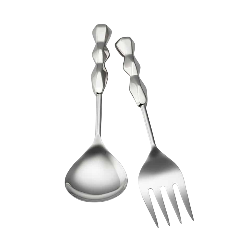 ชุดช้อนส้อมเสิร์ฟสลัดทรงเรขาคณิต ด้ามจับขัดเงาสแตนเลสอย่างดี ดีไซน์ทันสมัย ช้อนและส้อมโลหะ
