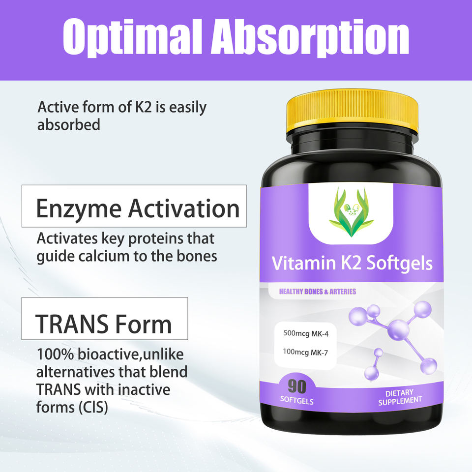 วิตามินเค2 ชนิดซอฟต์เจลเข้มข้นสูง ผสมเอ็มเค-4 บำรุงสมอง และเอ็มเค-7 บำรุงกระดูก สำหรับผู้ใหญ่ อาหารเสริมเพื่อสุขภาพ