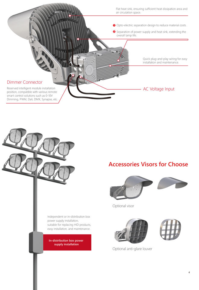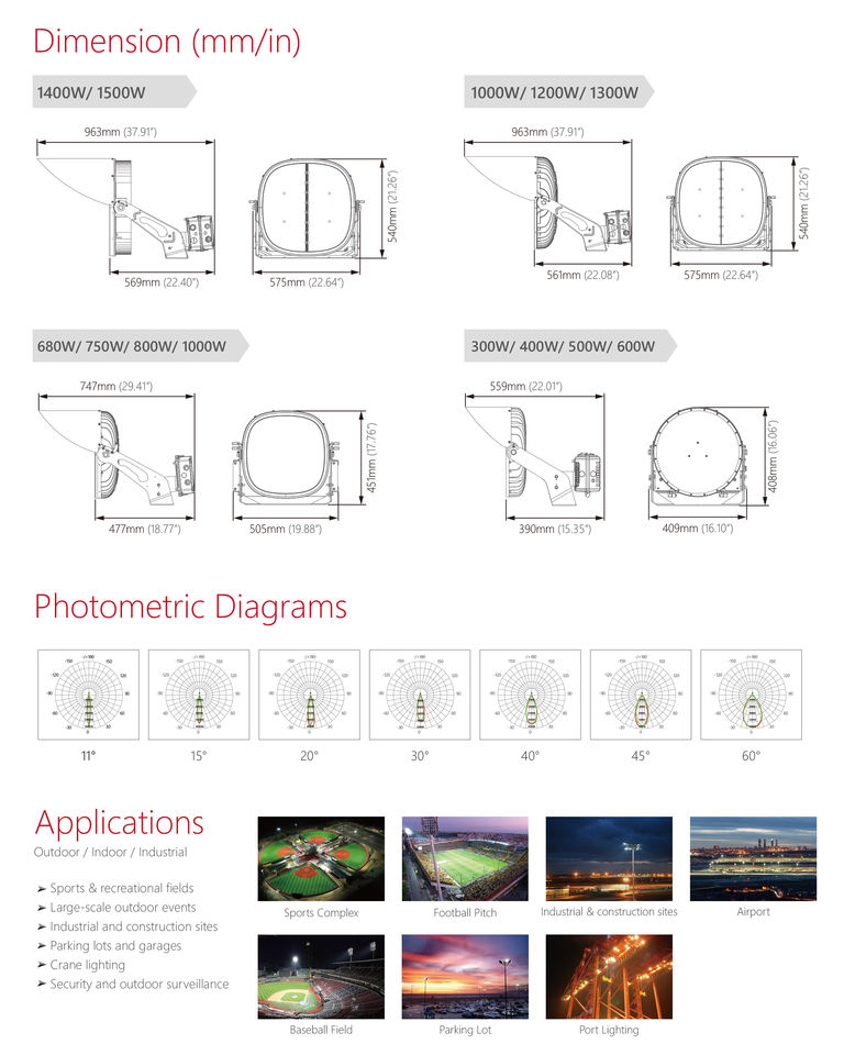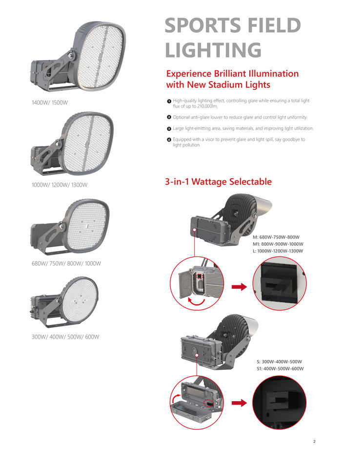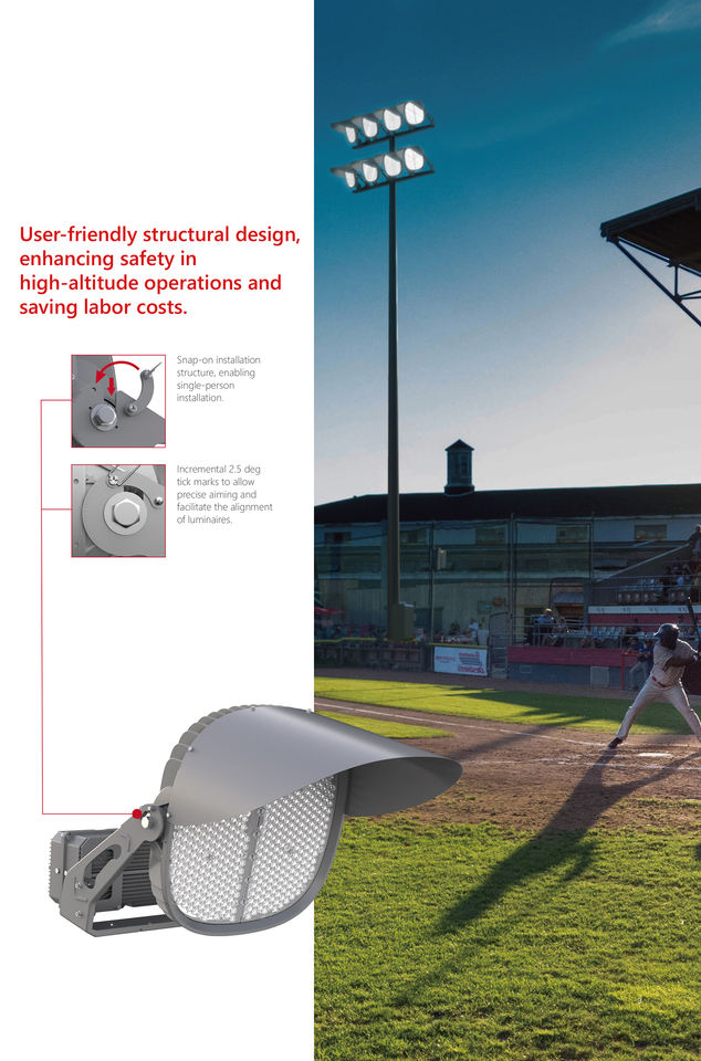 ไฟสนามกีฬา LED กำลังสูง 400 วัตต์ มาตรฐาน IP66 สำหรับกีฬากลางแจ้ง เช่น เบสบอล ซอฟต์บอล ฟุตบอล และอื่นๆ