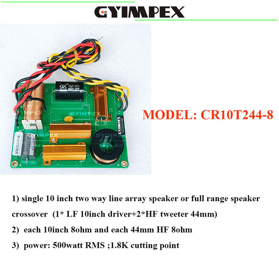 crossover system:For 1* LF 10'' driver 8ohm +2*HF 44mm tweeter 8ohm