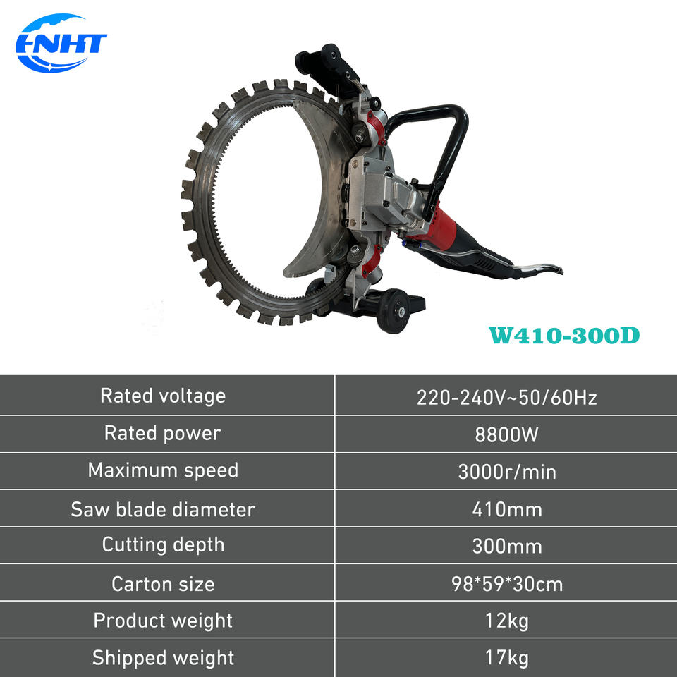 เครื่องเลื่อยตัดคอนกรีตกำลังสูง 8800 วัตต์ พร้อมใบเลื่อยขนาด 410 มม. และความลึกการตัด 30 ซม. สำหรับงานก่อสร้าง