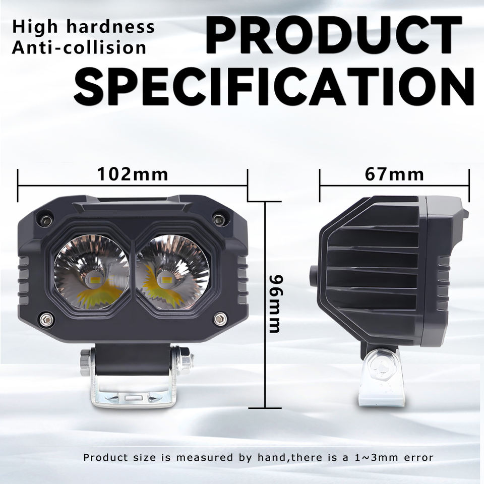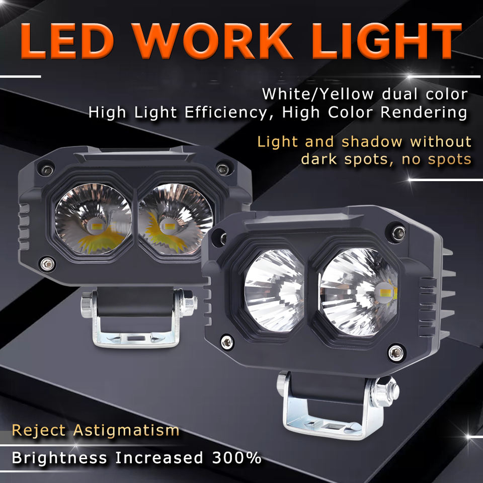 ไฟสปอร์ตไลท์ LED กำลังสูง สองสี 2 เลนส์ 20W กันน้ำ รุ่น MO91 ไฟหน้าสำหรับรถจักรยานยนต์ รถยนต์ รถบรรทุก รถเอทีวี
