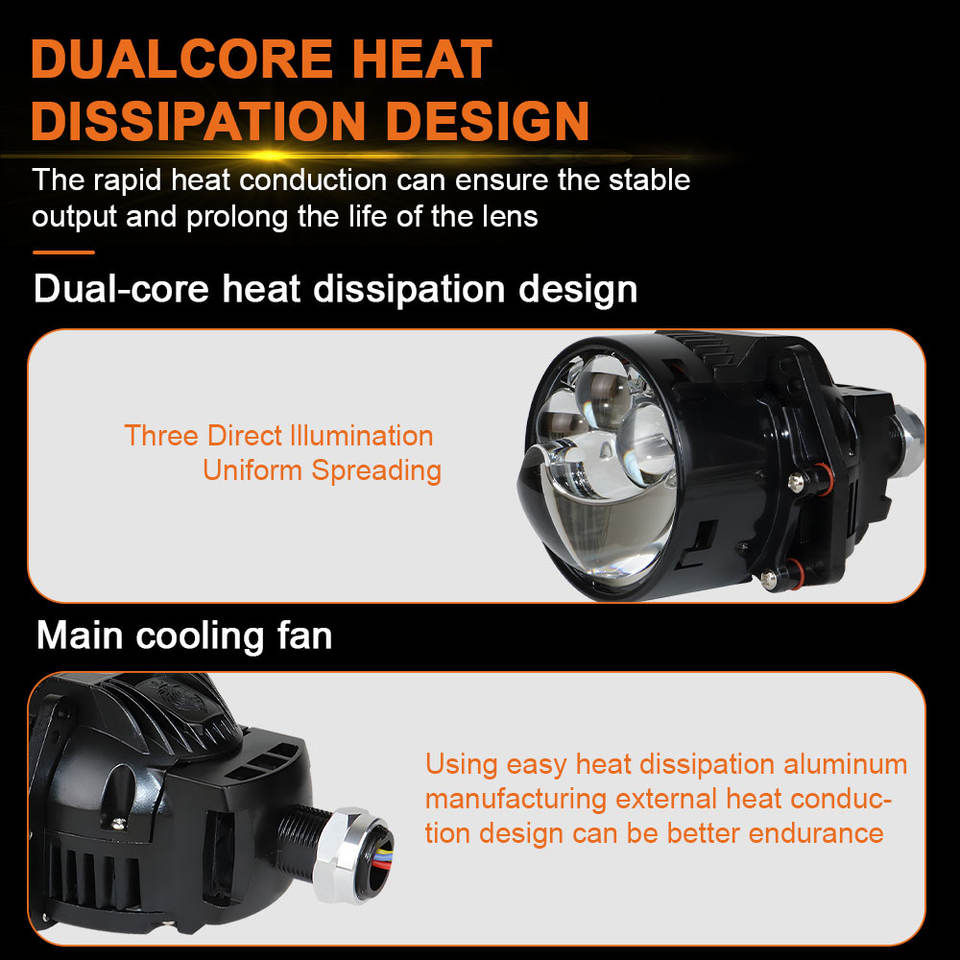 ไฟโปรเจคเตอร์เลเซอร์กำลังสูง K202 แบบสามจุด ขนาด 3 นิ้ว เลนส์ Bi-LED สำหรับขับขี่ ไฟหน้า LED 6000K IP68 กันน้ำ ไฟตัดหมอกสำหรับรถยนต์ 12V 60W