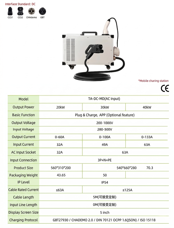 High Power Portable EV Charger 7KW 15KW 20KW 30KW 40KW DC Quick Charging CCS1 CCS2 GB/T Mobile Road Rescue EV Charger Station