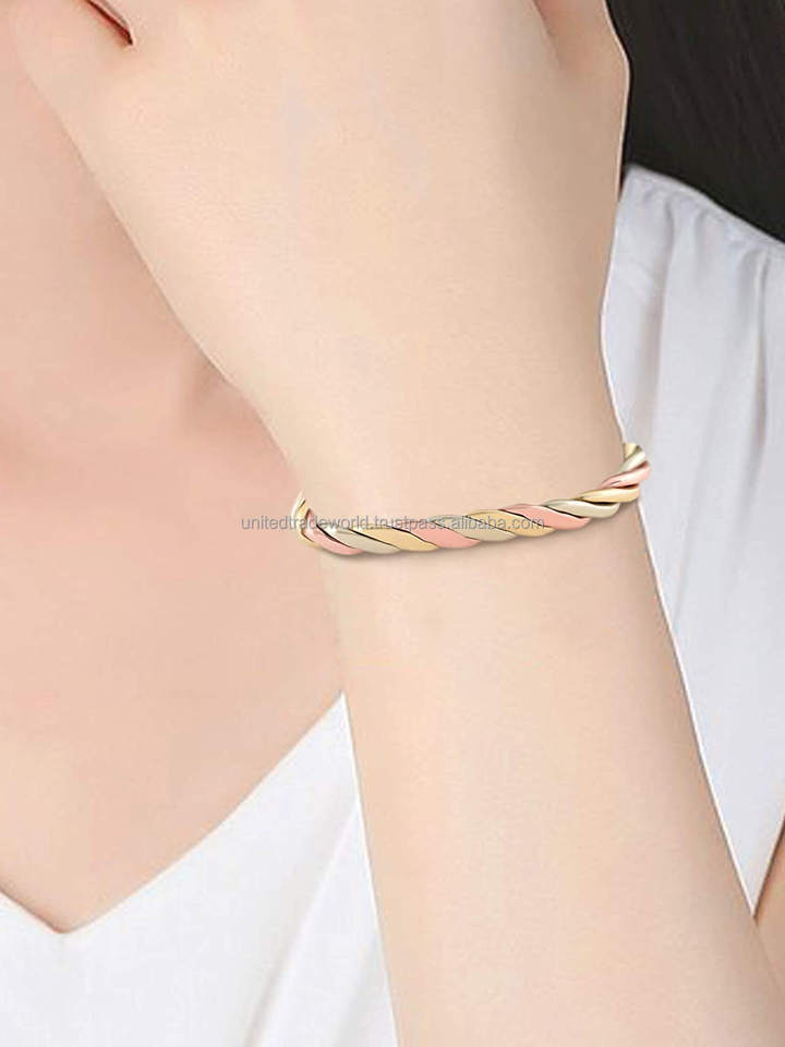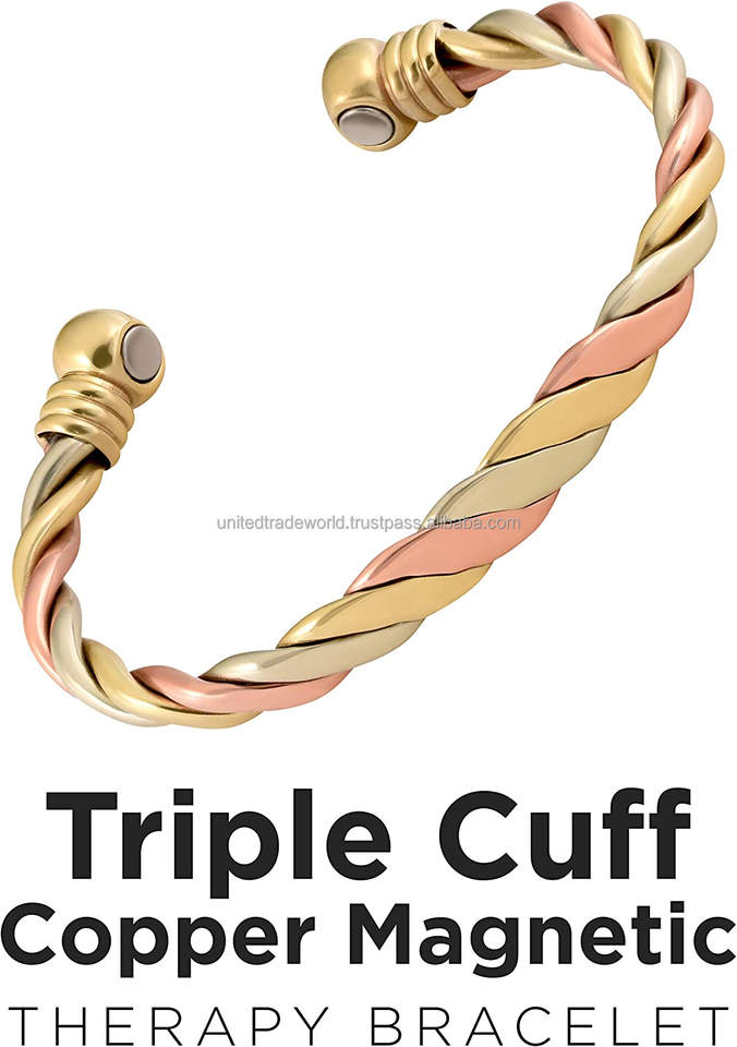 สร้อยข้อมือทองแดงบำบัดสามข้อมือพลังสูงสไตล์อินเทรนด์ฟื้นฟูร่างกายด้วยการชุบโรเดียมสีทอง