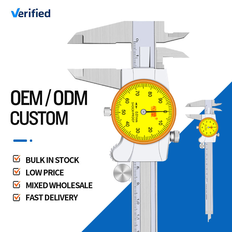 เวอร์เนียคาลิเปอร์สแตนเลสหน้าปัดสีเหลืองขนาด0.01มม. ความแม่นยำสูงวัดขนาดเส้นผ่าศูนย์กลางทั้งภายในและภายนอก