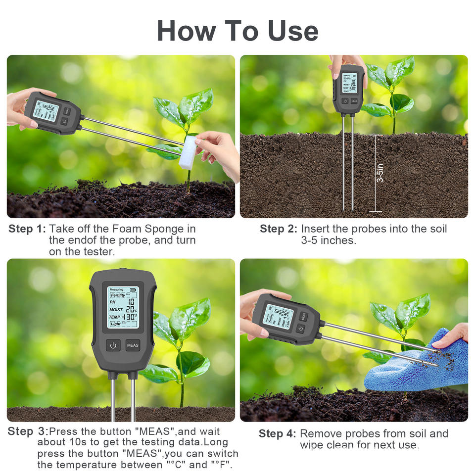 เครื่องวิเคราะห์ดินแบบเข็มคู่ 5-in-1 ความแม่นยำสูง รุ่นใหม่ พร้อมเครื่องวัดความชื้น อุณหภูมิ ความชื้นในอากาศ ค่า pH ความอุดมสมบูรณ์ และแสง