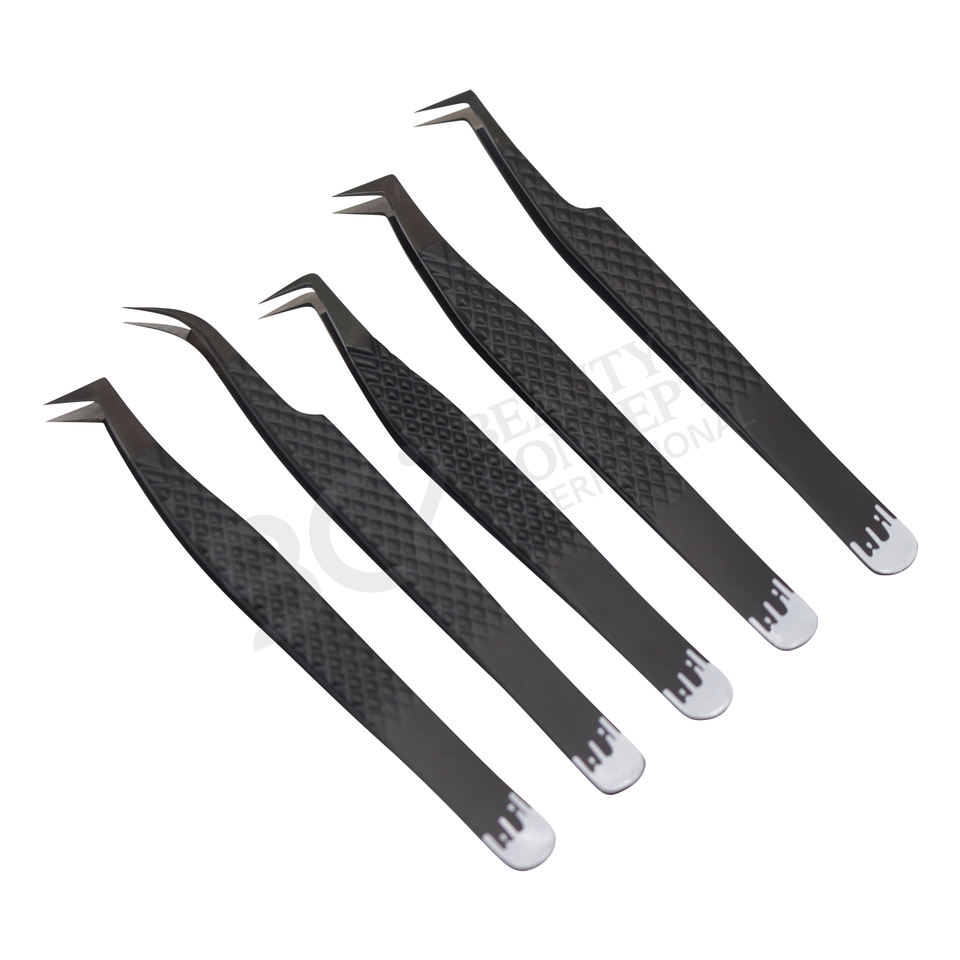 แหนบขนตาสแตนเลสแบบบาง90องศาความแม่นยำสูงพร้อมปลายแหลมไฟเบอร์สำหรับการต่อขนตา