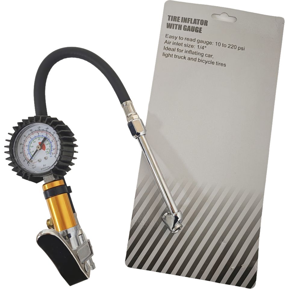 เครื่องวัดลมยางรถยนต์ความแม่นยำสูง พร้อมหัวเติมลมและเกจวัดแรงดันลมยาง