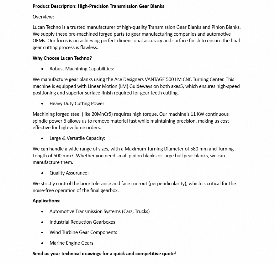CNC Turned Transmission Gear Blanksความมุ่งหมาย