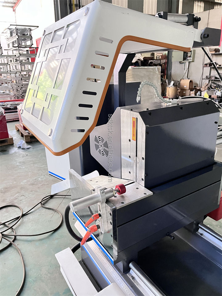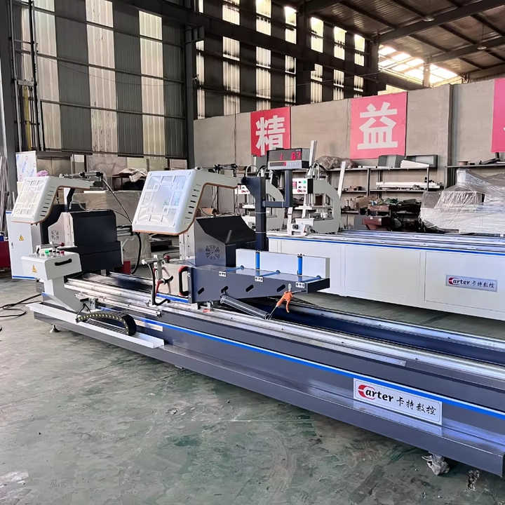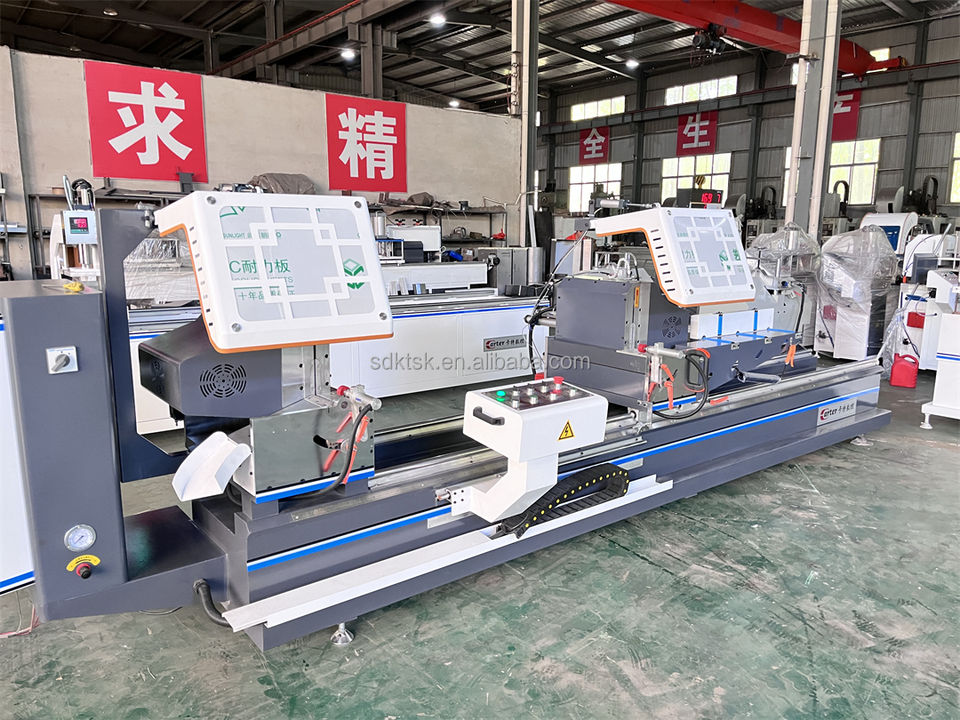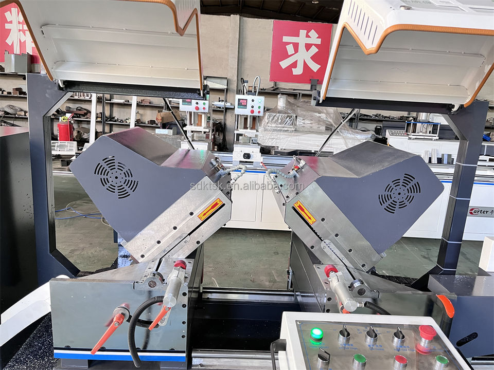 เลื่อยตัดมุมคาร์เตอร์ความแม่นยำสูง จอแสดงผลดิจิตอล 45 และ 90 องศา สำหรับโปรไฟล์ UPVC และอลูมิเนียม แบบสองหัว 380V สำหรับหน้าต่างและประตู