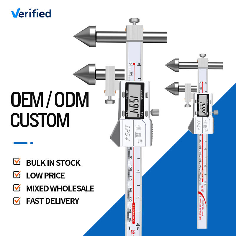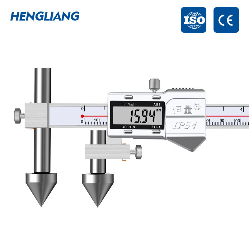 เวอร์เนียคาลิเปอร์ดิจิตอลความแม่นยำสูงสแตนเลสพร้อมหัววัดรูปกรวยรูตรงกลางและระยะขอบ