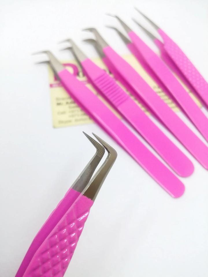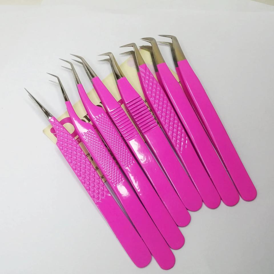 แหนบขนตาที่มีความแม่นยำสูงแหนบปลายสแตนเลสเคลือบสีชมพูแหนบแยกปริมาณ45องศา