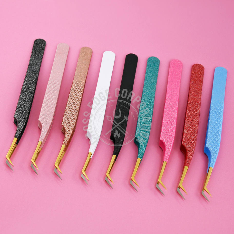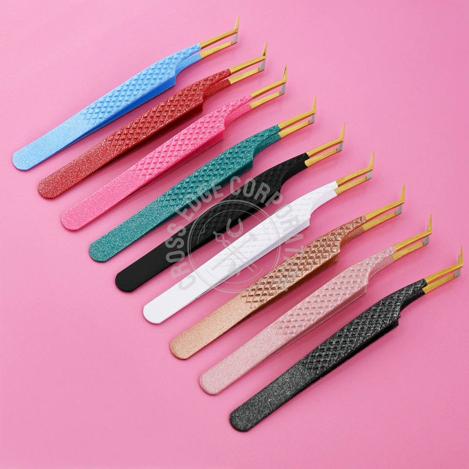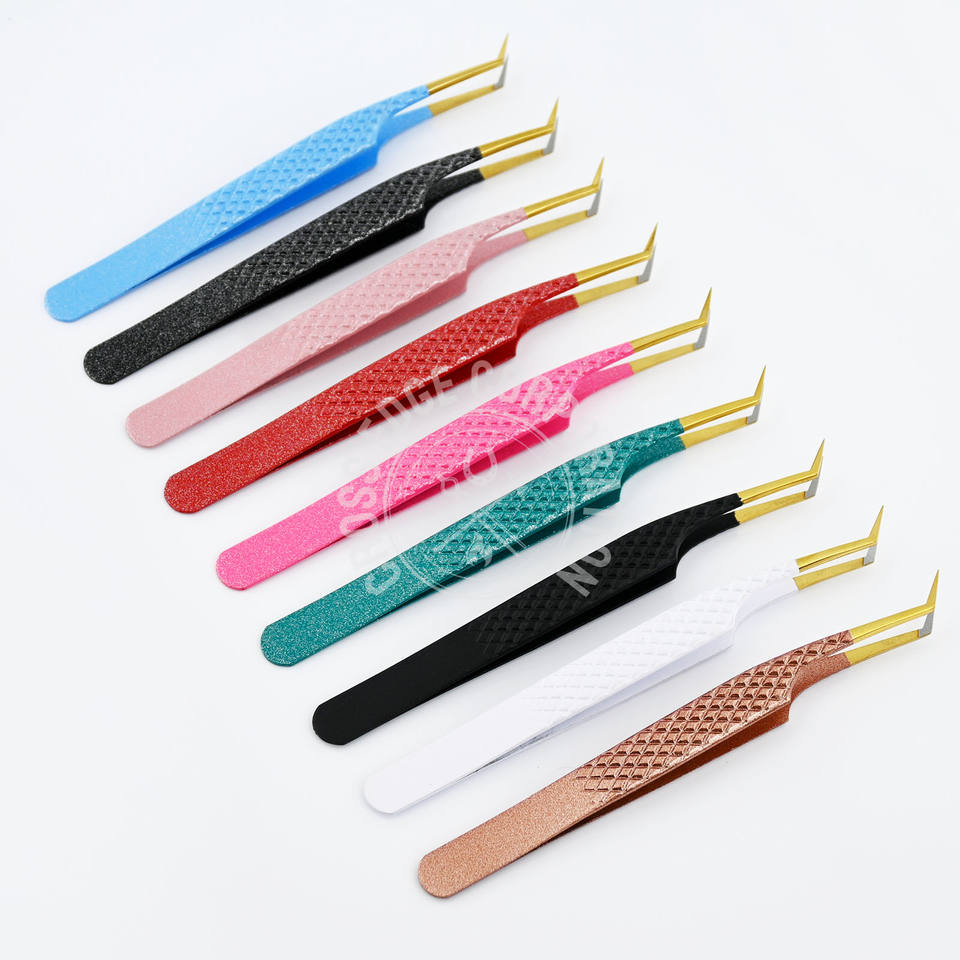 แหนบปลายไฟเบอร์ความแม่นยำสูง 45 องศา สำหรับต่อขนตาแบบวอลลุ่ม คลาสสิค ง่ายต่อการใช้งาน ต่อขนตาแบบพัด พร้อมโลโก้สั่งทำพิเศษ แหนบแยกขนตา