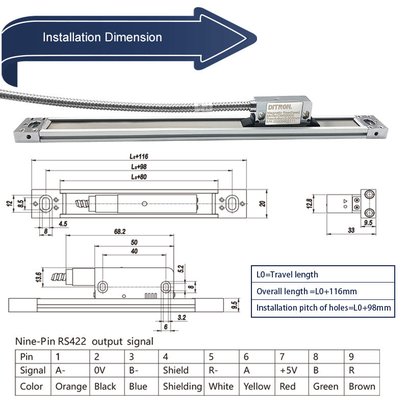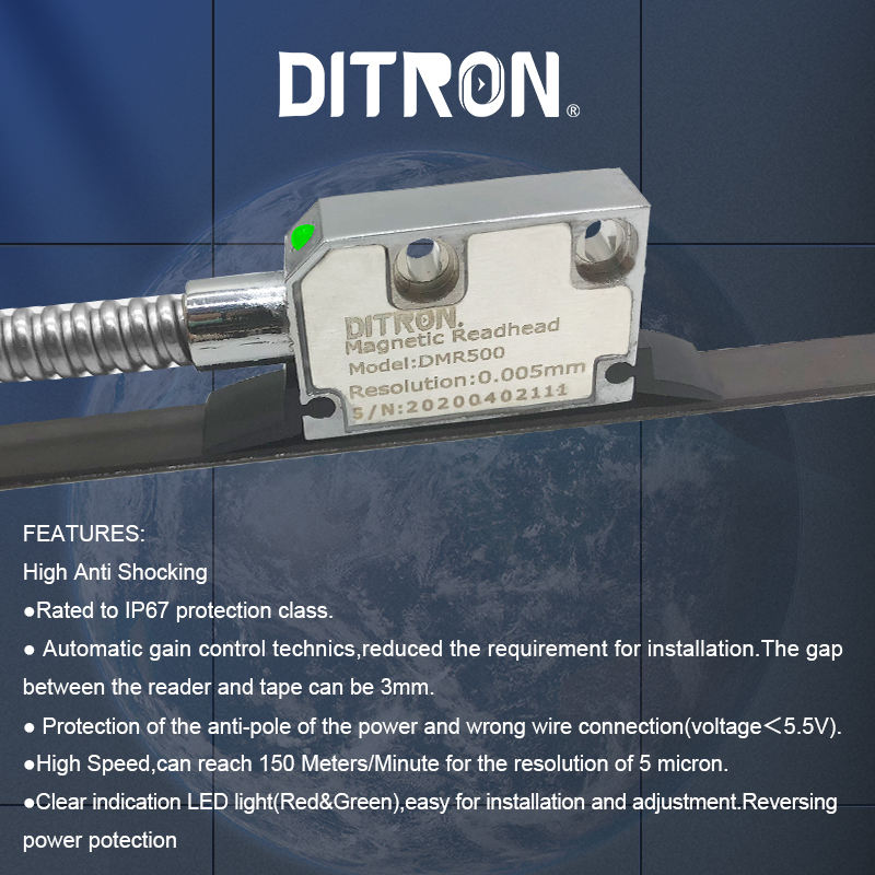 หัวอ่านสเกลแม่เหล็กแบบแม่เหล็กดูดติดแน่น ความแม่นยำสูง มาตรฐาน IP67 พร้อมเทปแม่เหล็ก สำหรับเครื่องกัด/เครื่องกลึง ชุด DRO