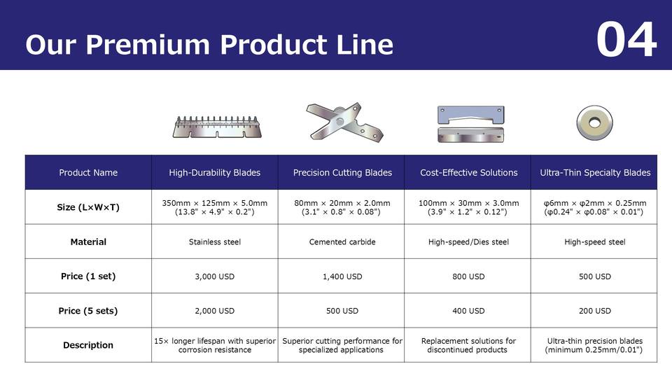 ใบมีดอุตสาหกรรมยี่ห้อ Qoncut ความแม่นยำสูง ผลิตชิ้นส่วนสแตนเลสตามแบบ OEM ราคาแข่งขัน ผลิตในญี่ปุ่น สำหรับยาง