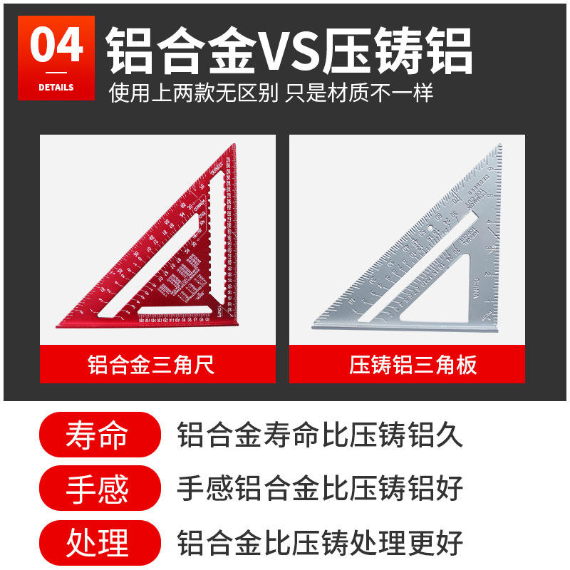 ไม้บรรทัดฉาก 45 องศา ความแม่นยำสูง อเนกประสงค์ ผลิตจากอะลูมิเนียมอัลลอยด์และสแตนเลส แบบหนา สำหรับงานไม้