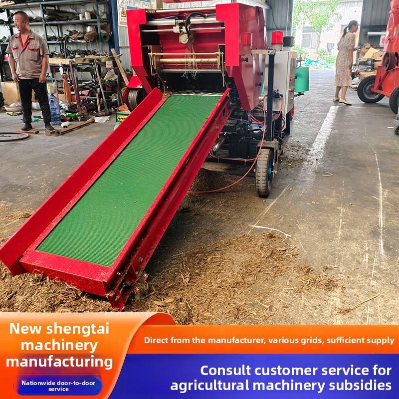 เครื่องอัดฟางแบบพกพาความแม่นยำสูง เครื่องอัดฟางม้วนกลมขนาดเล็กแบบไฟฟ้า สำหรับเศษโลหะ หญ้าหมัก ขี้เลื่อย พร้อมตาข่ายพันม้วนขนาดใหญ่