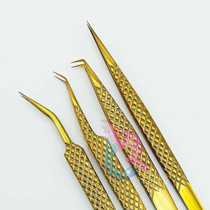 แหนบแยกขนตาสแตนเลสความแม่นยำสูงสำหรับการต่อขนตาสีทอง90/45องศา