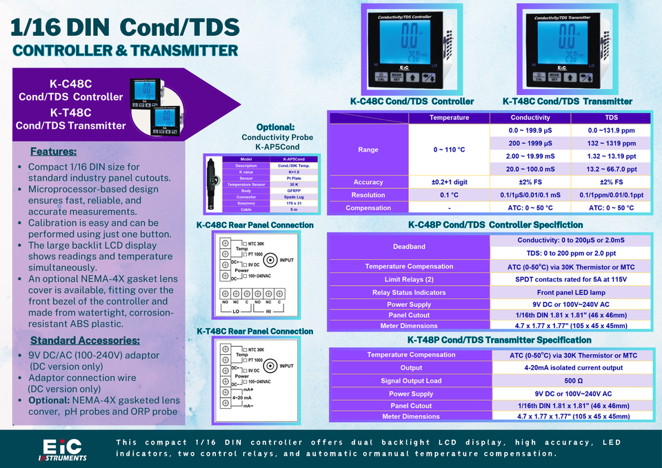 ความแม่นยำขั้นพื้นฐานอุณหภูมิการนำไฟฟ้าTDS:±0.2+1 หลัก, ±2% FS, ±2% FS