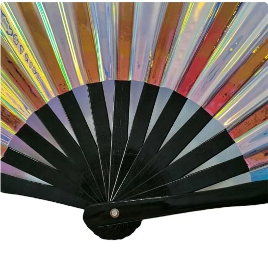 พัดมือพับได้ลายโฮโลแกรมพลาสติก PVC คุณภาพสูง ขนาด 33 ซม. สำหรับงานปาร์ตี้