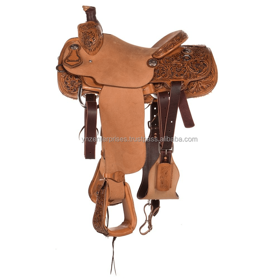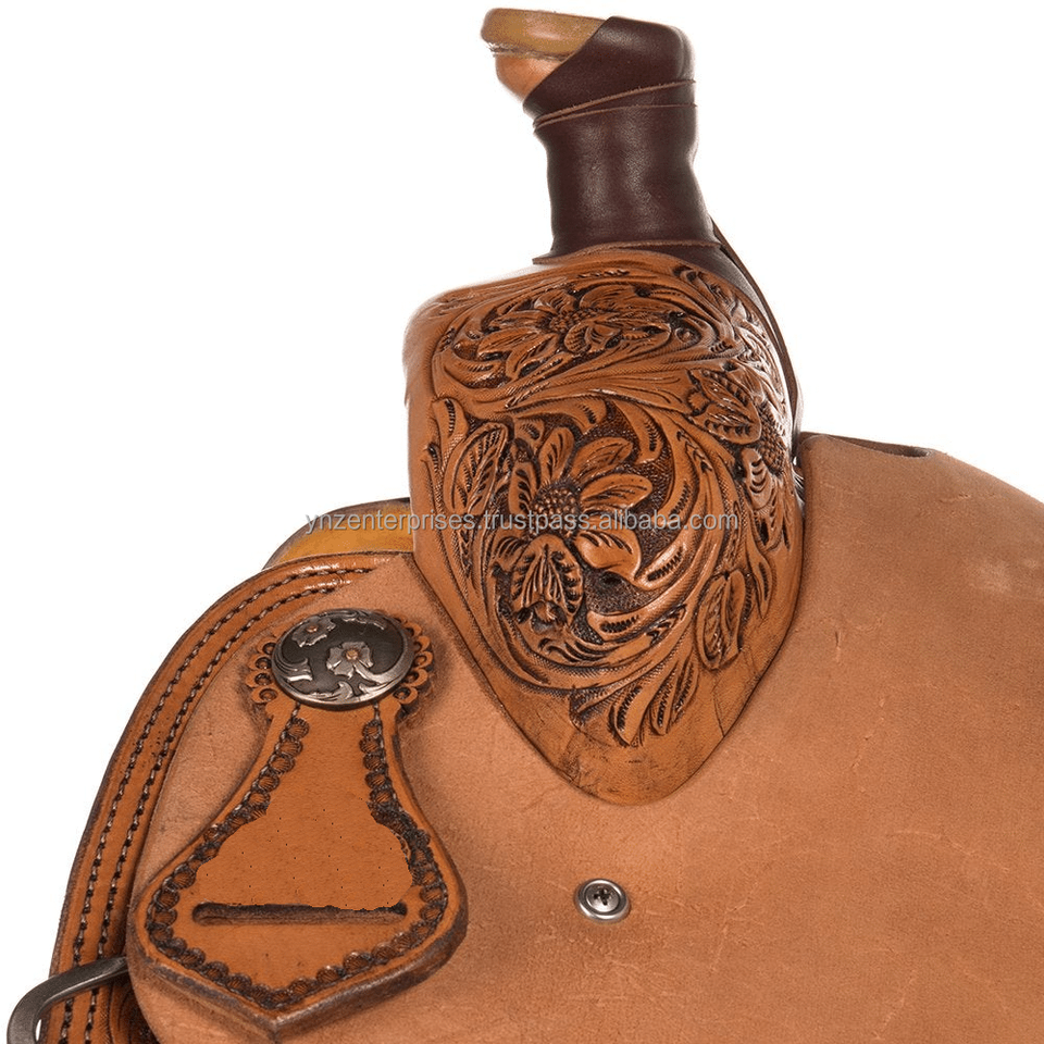 ชุดอานม้าหนังแท้คุณภาพสูงแบบตะวันตก (ขนาดเบาะ 14-18 นิ้ว) ทนทาน สีและขนาดปรับแต่งได้
