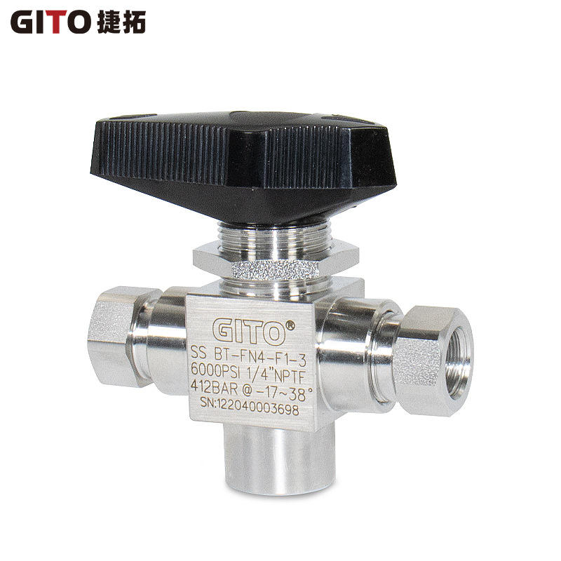 วาล์วบอลแบบทรันนิออนแรงดันสูง 6000PSI สำหรับสถานี CNG แบบแมนนวลสองตำแหน่งสามทาง สำหรับน้ำ แก๊ส น้ำมัน รองรับ OEM ปรับแต่งได้