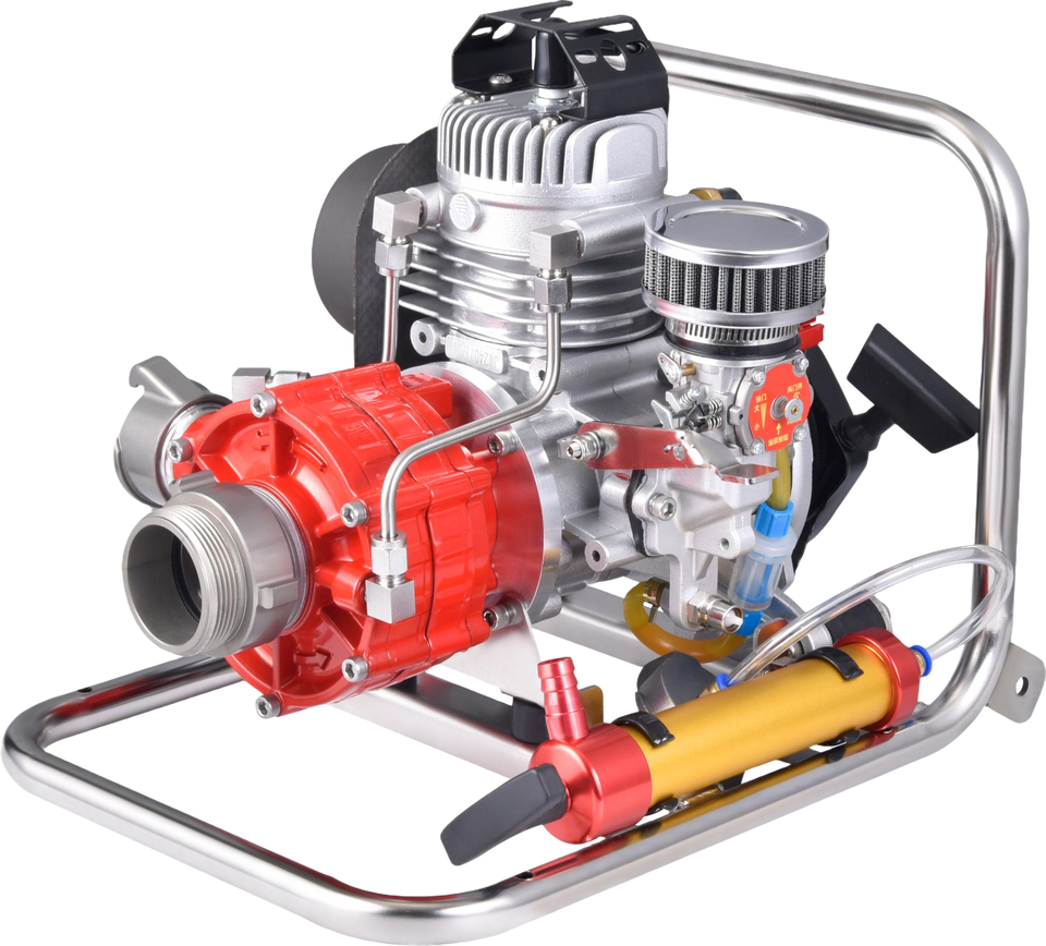 ปั๊มน้ำดับเพลิงแรงดันสูงแบบแรงเหวี่ยง ระยะส่งสูงสุด 179 เมตร อัตราการไหล 216 ลิตร/นาที สำหรับดับไฟป่าและจ่ายน้ำฉุกเฉิน