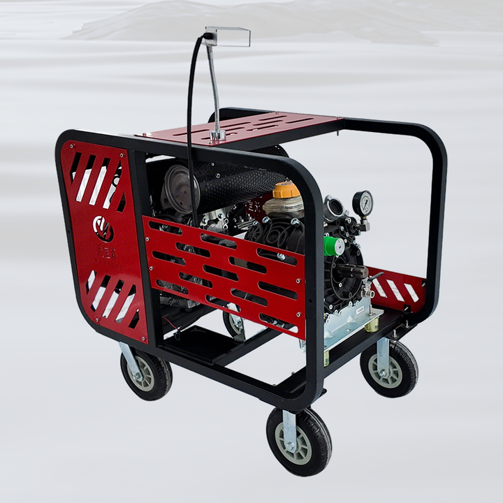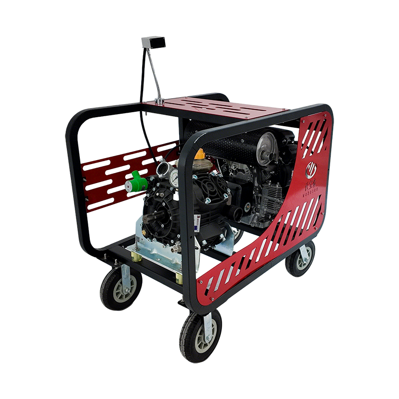 ปั๊มไดอะแฟรมแบบลูกสูบสี่สูบแรงดันสูง ใช้เครื่องยนต์เบนซิน ควบคุมระยะไกล ทนทานต่อแรงกระแทกสูง สำหรับงานเกษตร