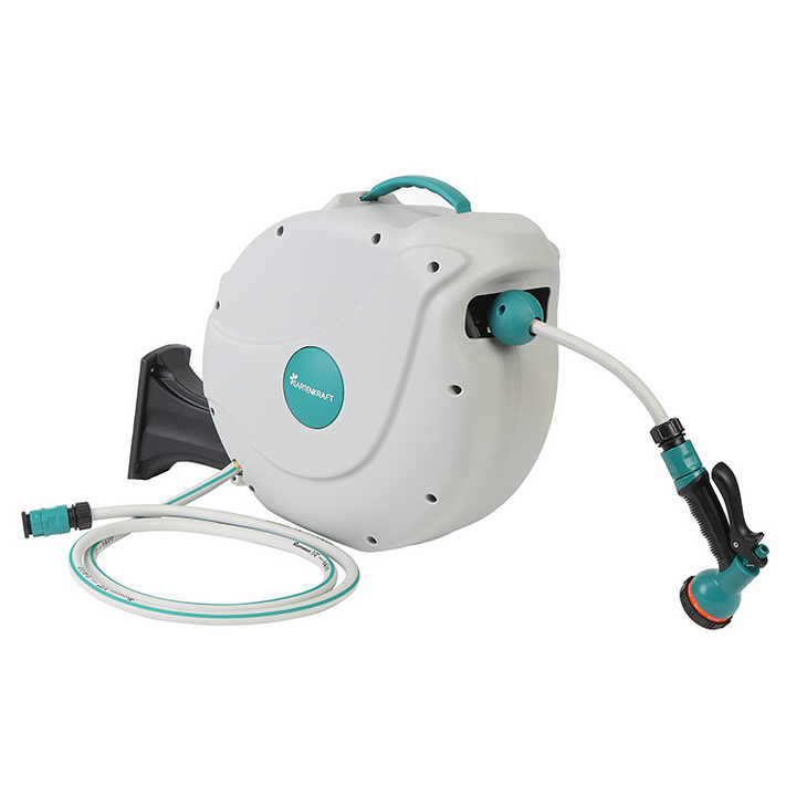 ระบบรดน้ำอัตโนมัติแบบยืดหดได้แรงดันสูง ติดผนัง พร้อมม้วนเก็บสายยางพลาสติกและยางสำหรับสวน
