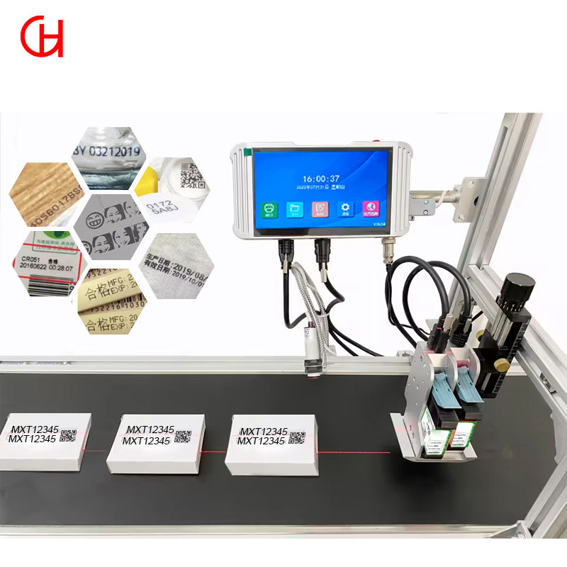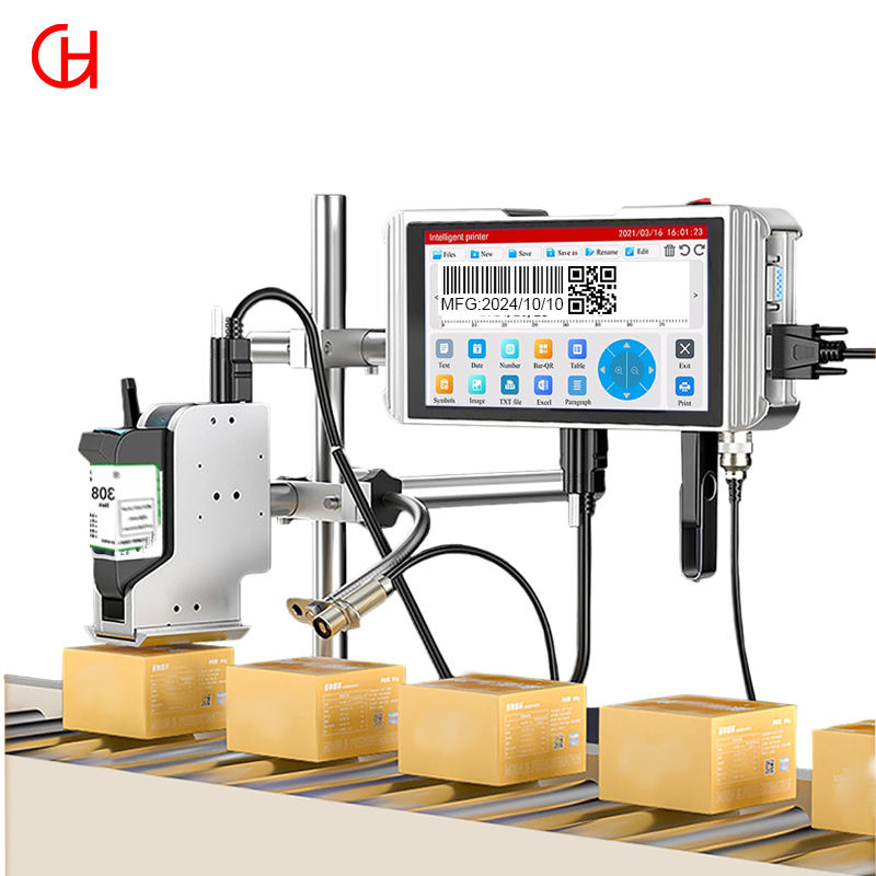 เครื่องพิมพ์อิงค์เจ็ท TIJ ออนไลน์ไฟฟ้าอัตโนมัติเต็มรูปแบบ ผลิตภาพผลผลิตสูง สำหรับพลาสติก โลหะ แก้ว ไม้ พร้อมหัวพิมพ์หลายหัว