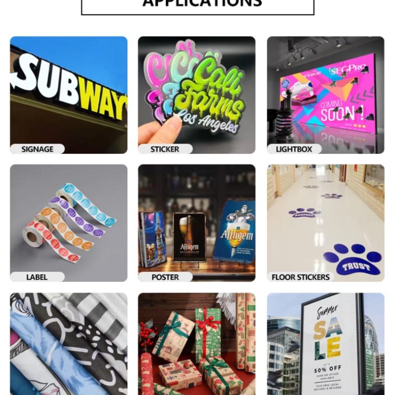 วัสดุการพิมพ์:ป้าย/PET/POP/ฉลาก/กล่องไฟ/ผ้า/บรรจุภัณฑ์/โปสเตอร์/สติ๊กเกอร์ติดพื้น