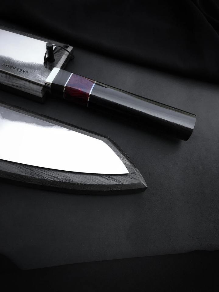 มีดเชฟมืออาชีพ ใบมีดสแตนเลส ด้ามไม้สวยงาม ปลอกหนัง ทำด้วยมือ ออกแบบสำหรับคนถนัดซ้ายและขวา ปรับแต่งได้