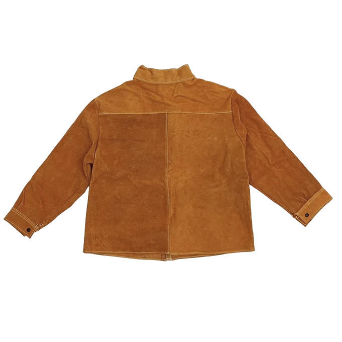 เสื้อแจ็คเก็ตหนังวัวแท้ป้องกันสูงสำหรับงานเชื่อม ทนทาน พร้อมผ้าฝ้ายกันไฟ สำหรับป้องกันมือ