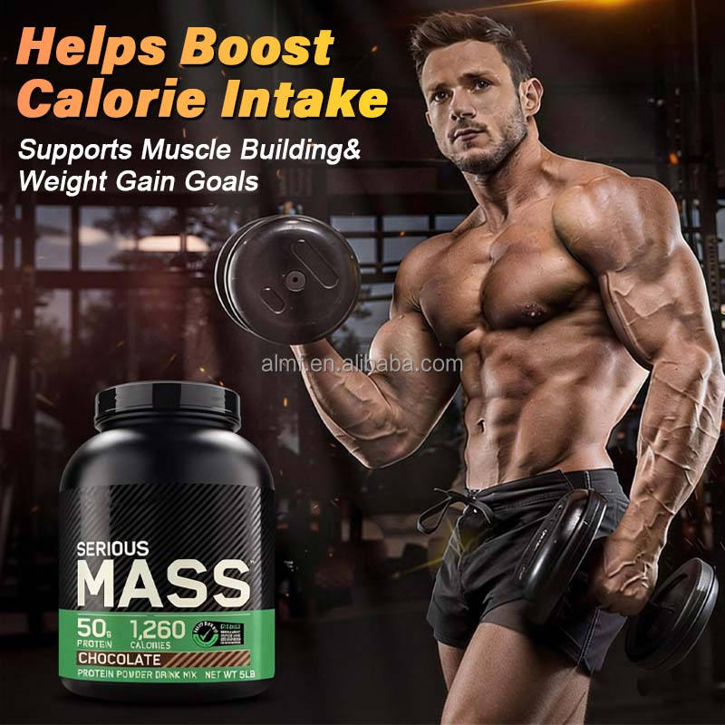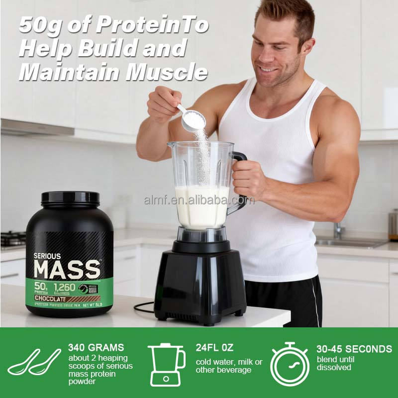โปรตีนสูง 50 กรัม 1260 แคลอรี่ รสช็อกโกแลต 5 ปอนด์ อาหารเสริมเพิ่มน้ำหนัก เพิ่มกล้ามเนื้อ สำหรับฟิตเนส สร้างมวลกล้ามเนื้อ ผง Serious Mass