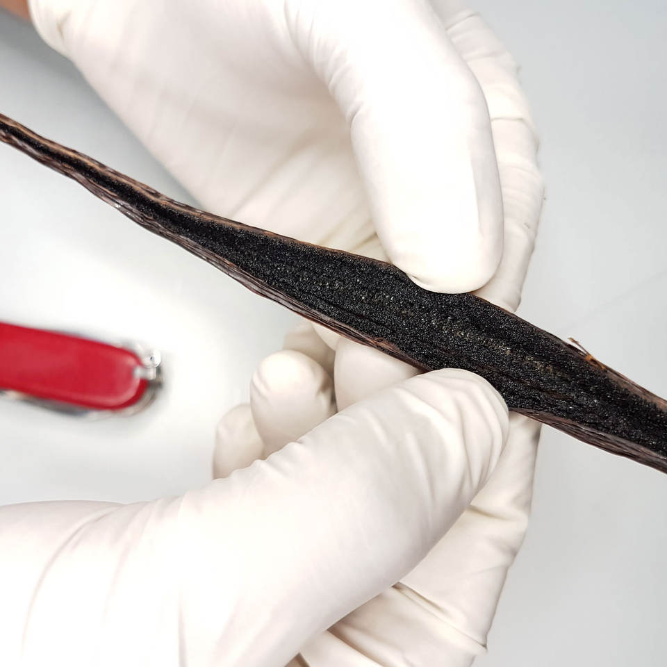 ลักษณะของเมล็ดวานิลลา:ถั่ววานิลลาสีดำตัด