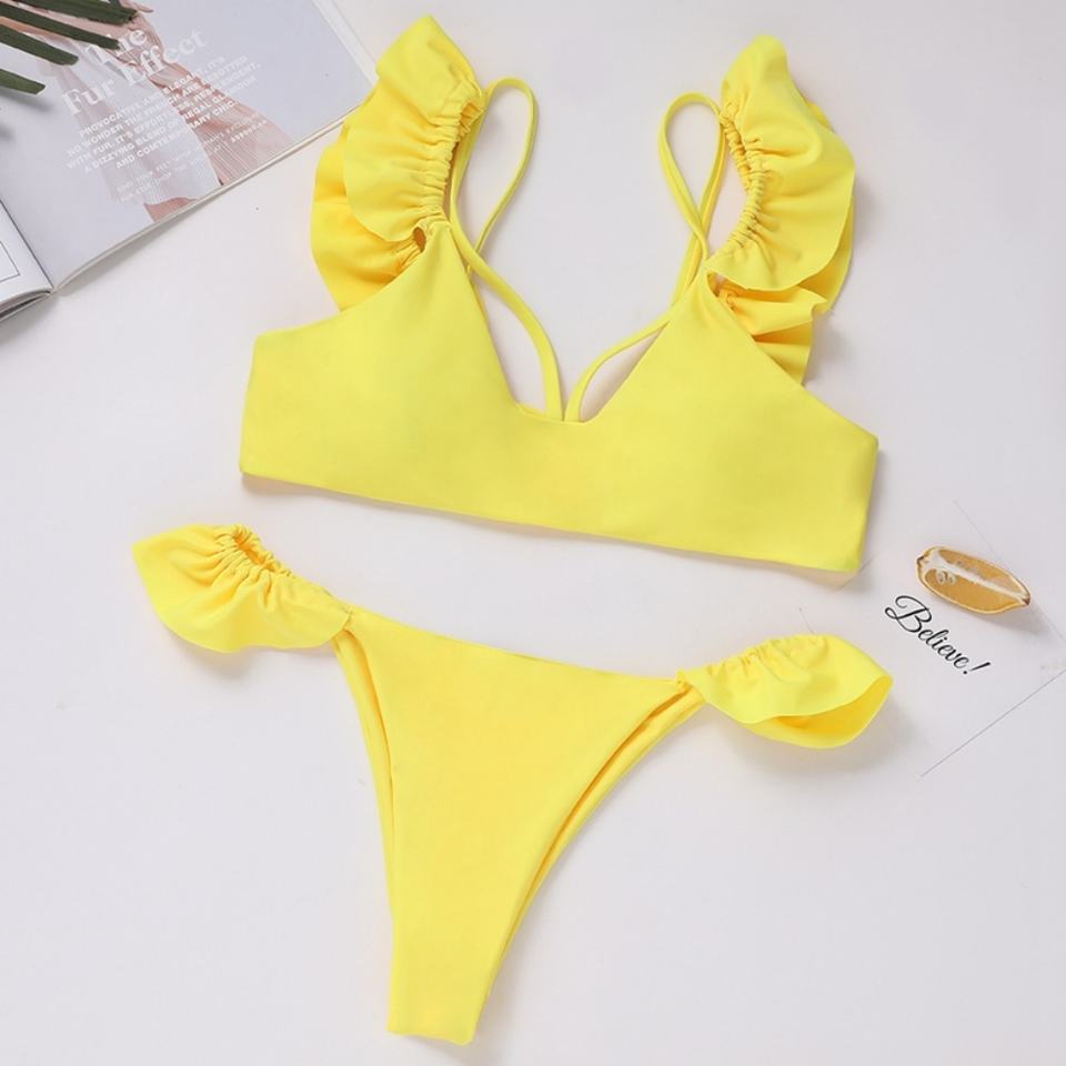 ชุดบิกินี่ผู้หญิงคุณภาพสูง 1 ชิ้น ดีไซน์ลายจุดพิมพ์ลายแบบกำหนดเอง ชุดว่ายน้ำวีสตริง ชุดชายหาด