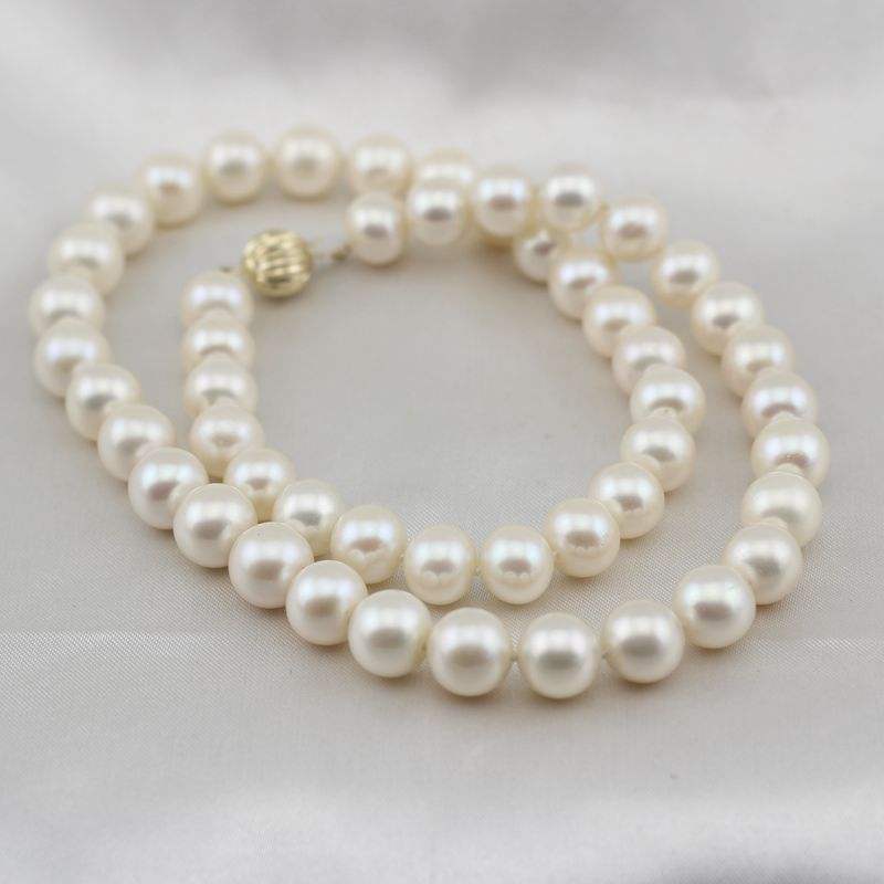 สร้อยคอมุกน้ำจืดคุณภาพสูง ขนาด 10-11 มม. พร้อมลูกปัดกลมเงางาม และตัวล็อคทอง 14K ของขวัญวันแม่/วันครู