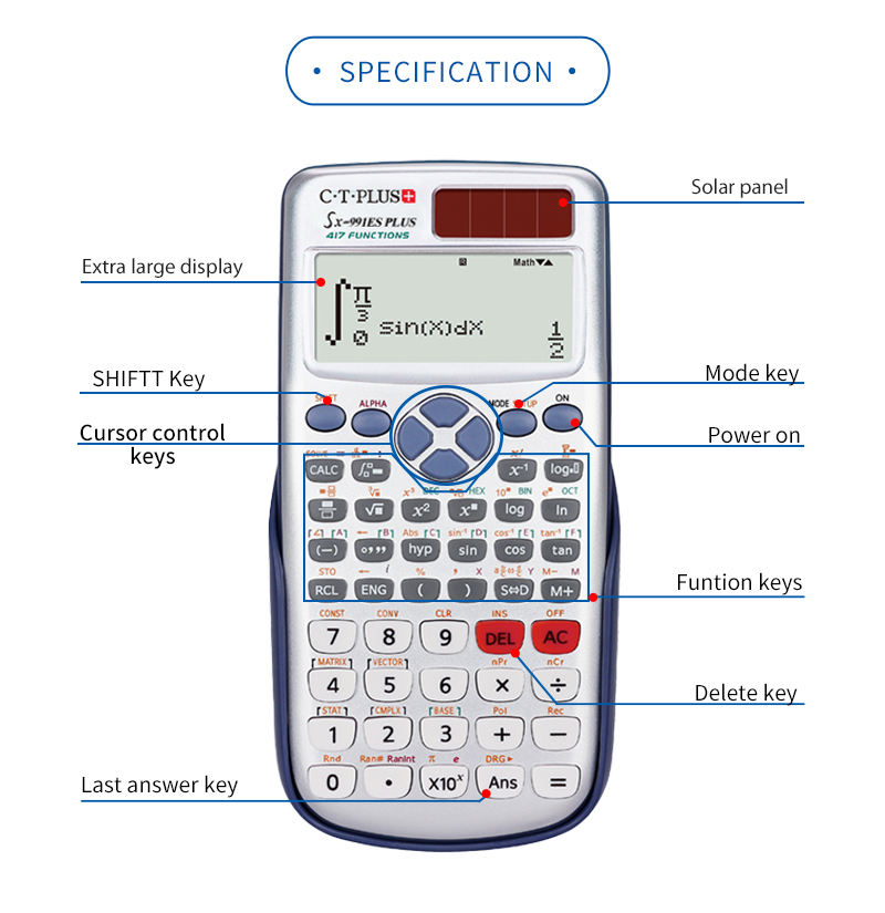 เครื่องคิดเลขวิทยาศาสตร์อิเล็กทรอนิกส์10 + 2หลัก FX-991ES บวกเครื่องเขียนสำหรับนักเรียนที่ทำจากพลาสติกทนทาน