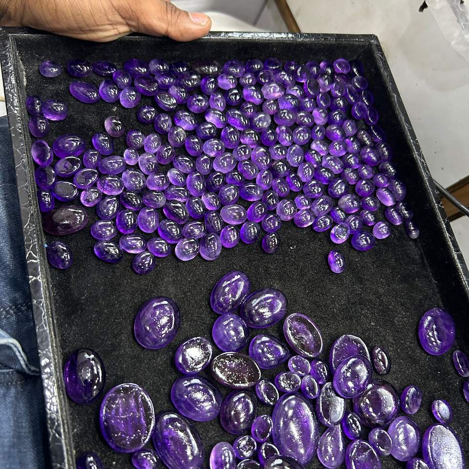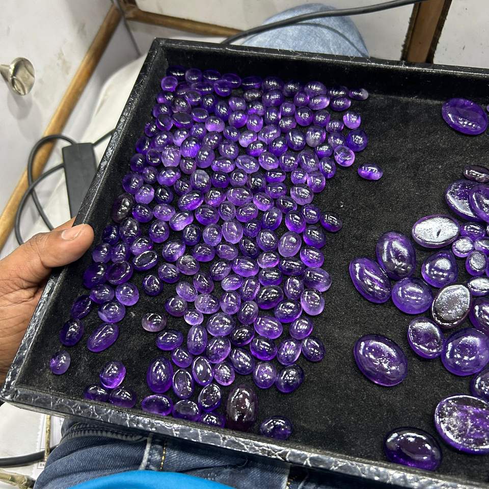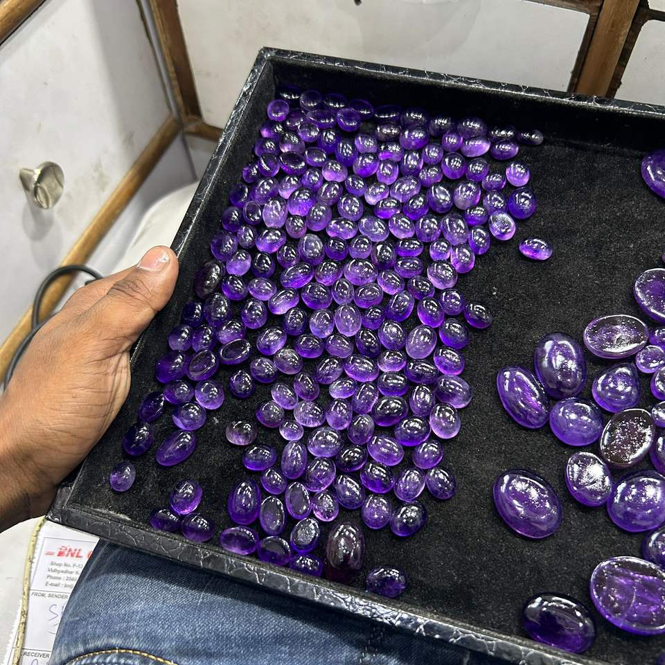 พลอยอะเมทิสต์สีน้ำเงินธรรมชาติคุณภาพสูง รูปทรงวงรี สำหรับทำเครื่องประดับ SRK GEMS รับรองโดยบุคคลที่สาม