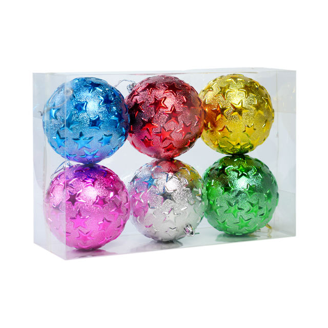 ชุดเครื่องประดับตกแต่งคริสต์มาสพลาสติกคุณภาพสูง ขนาด 10 ซม. รูปทรงลูกบอล 6 ชิ้น สีสันหลากหลาย สไตล์คลาสสิก