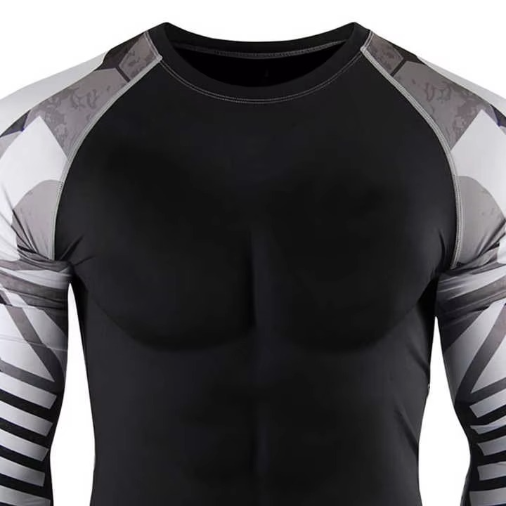 เสื้อรัดรูป100% ของผู้ชายเสื้อวอร์มแบบซับลิเมชันพิมพ์ลาย