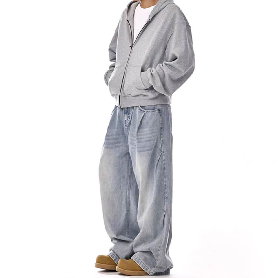 High Quality 100% Cotton 14 oz Denim Baggy Jeans for Men Custom Light Blue Acid Washed Straight Loose Fit Hip Hop for Autumn