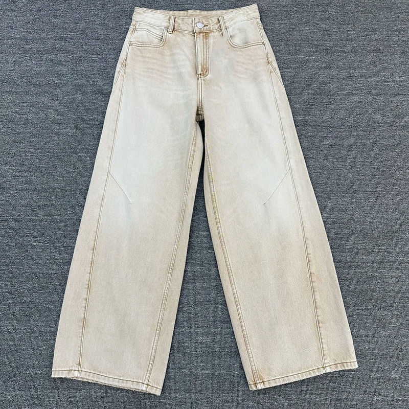 กางเกงยีนส์เดนิมทรงแบ็กกี้คุณภาพสูง 100% ผ้าฝ้าย 14 ออนซ์ สไตล์สตรีทแวร์สำหรับผู้ชาย สีฟ้าอ่อนแบบฟอกกรด ทรงตรง ระบายอากาศได้ดี สไตล์ฮิปฮอป