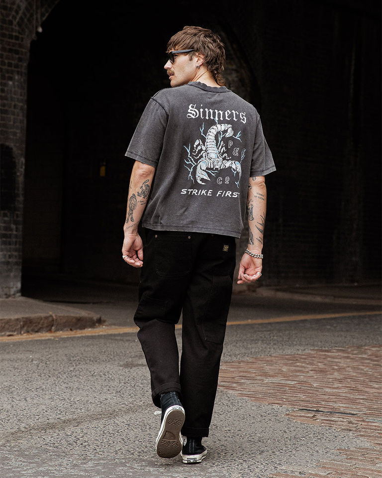 เสื้อยืดผู้ชายผ้ายีนส์ฟอก